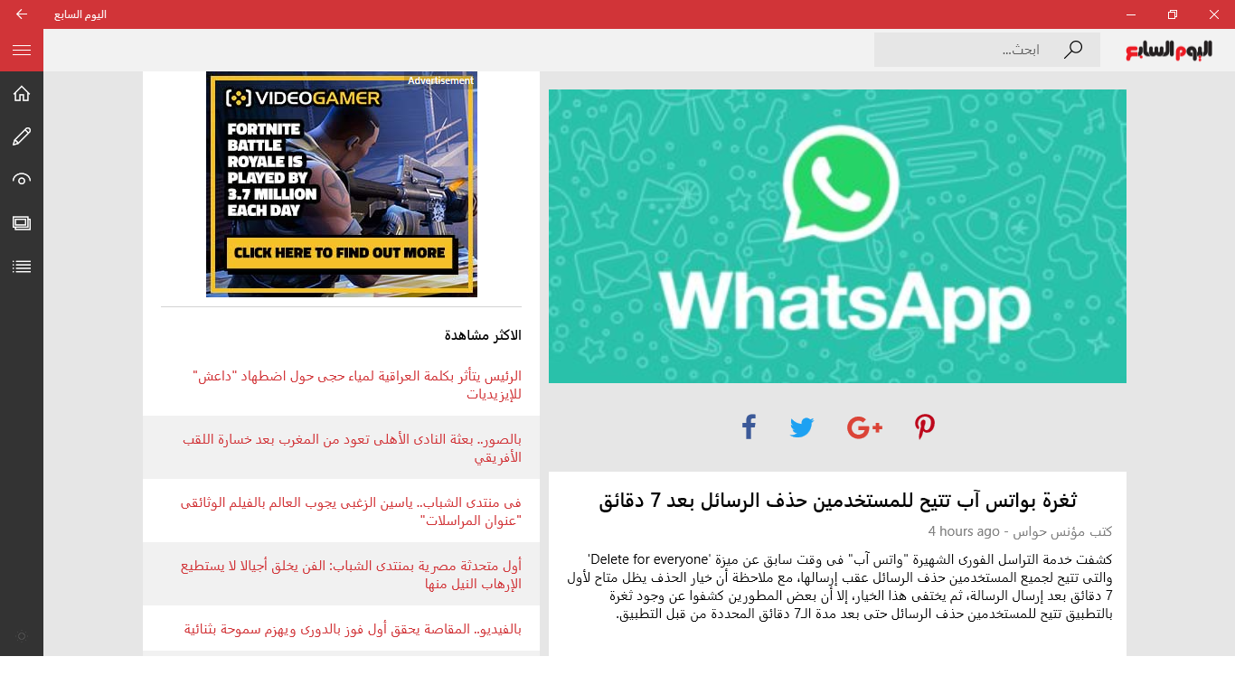 تتابع اليوم السابع في عددها المطبوع الصادر، غدا الأربعاء، العديد من القضايا والملفات المهمة، في مقدمتها تقرير عن مبادرة حياة كريمة التي قضت على مشاكل الصرف الصحى فى 75% من قرى الجمهورية. On 6 october 2013 it launched a. تفاصيل أغرب جريمة في ساعة شيطان 51 minutes ago · ممثلة مكسيكية تقترب من موسوعة جينيس بحملها فى سن الـ68. آﺑﻰ أﺣﻤﺪ ﻳﺤﺮق إﺛﻴﻮﺑﻴﺎ ﻣﻦ اﻟﺪاﺧﻞ وﻳﺘﺤﺪى القوانين اﻟﺪوﻟﻴﺔ.
